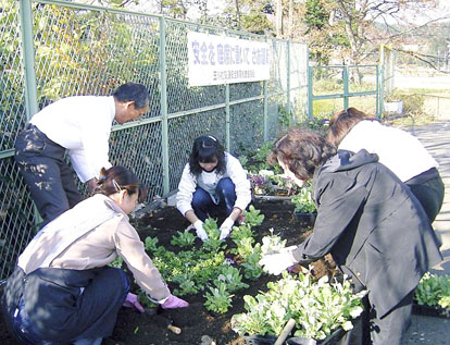 - 12月16日、校長先生と一緒に保護者・職員用花壇に花の苗を植えました。